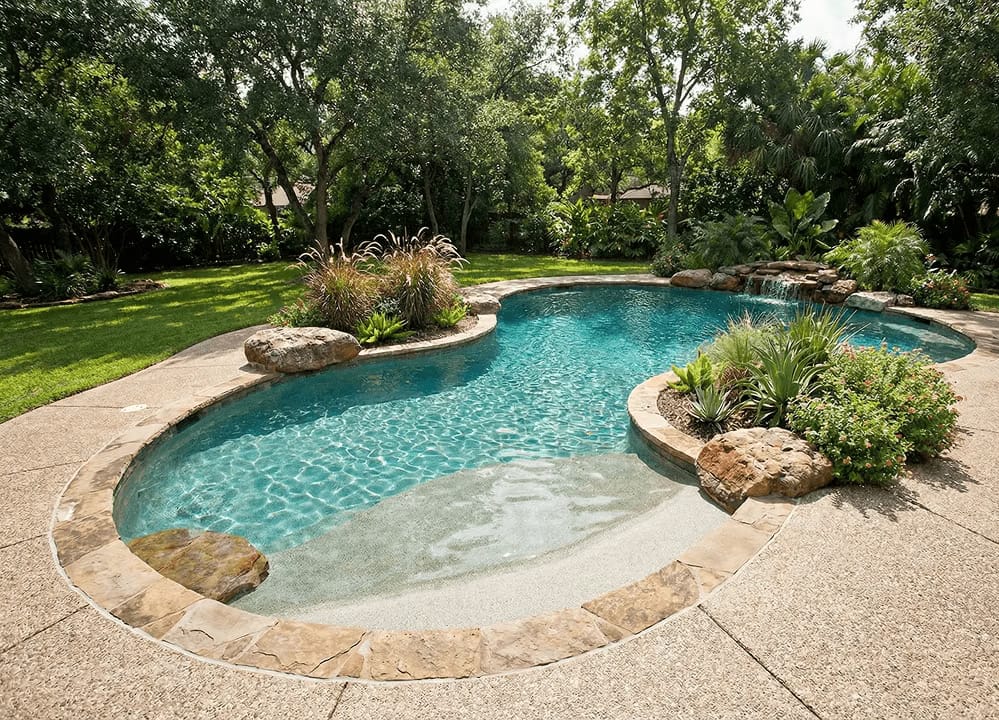 Pools surrounded by oak, cedar, and live oak trees require extra debris management.